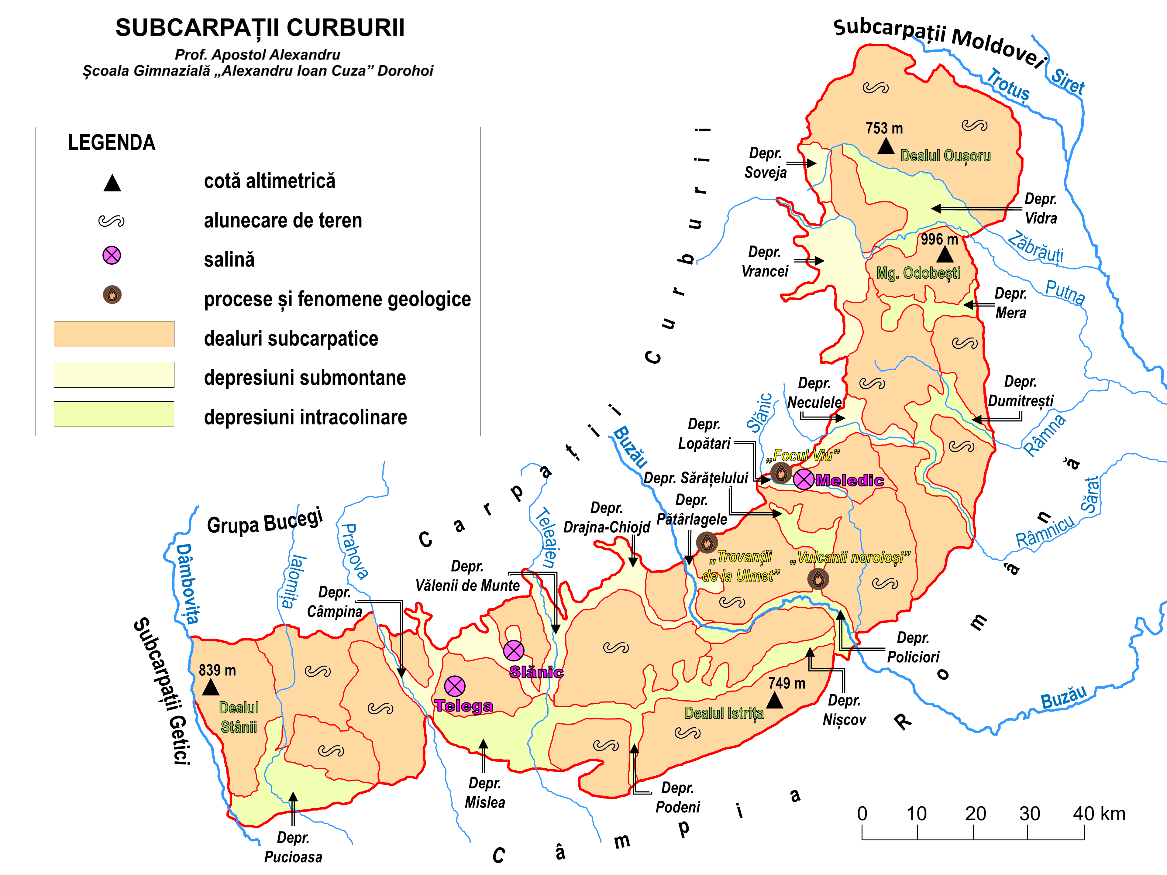 - cel mai complex sectorul subcarpatic: